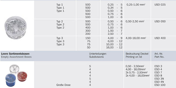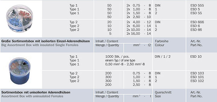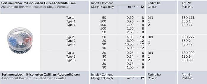 Aderendhülsen in Sortimentsboxen
